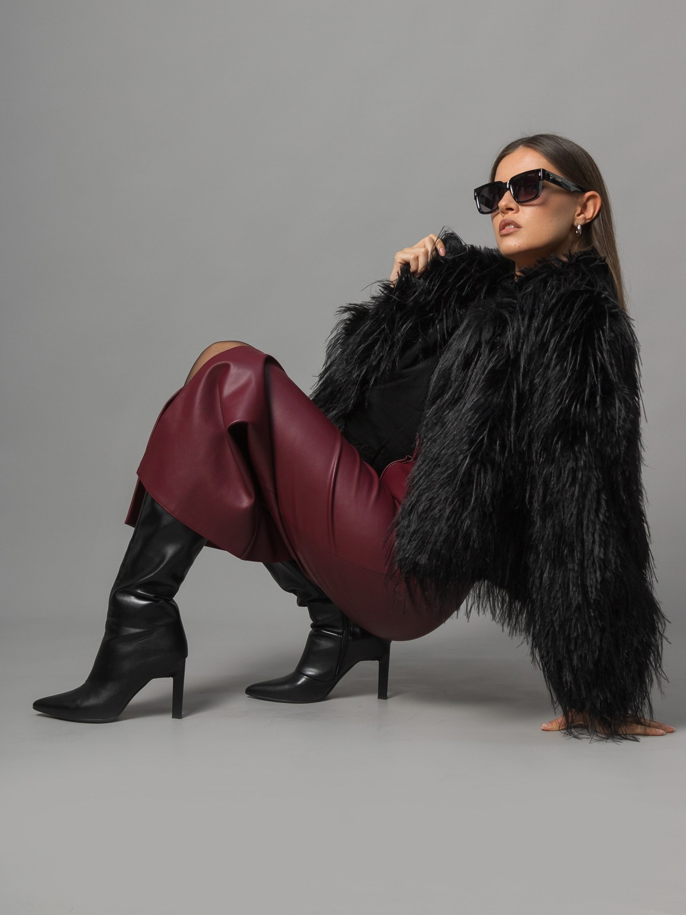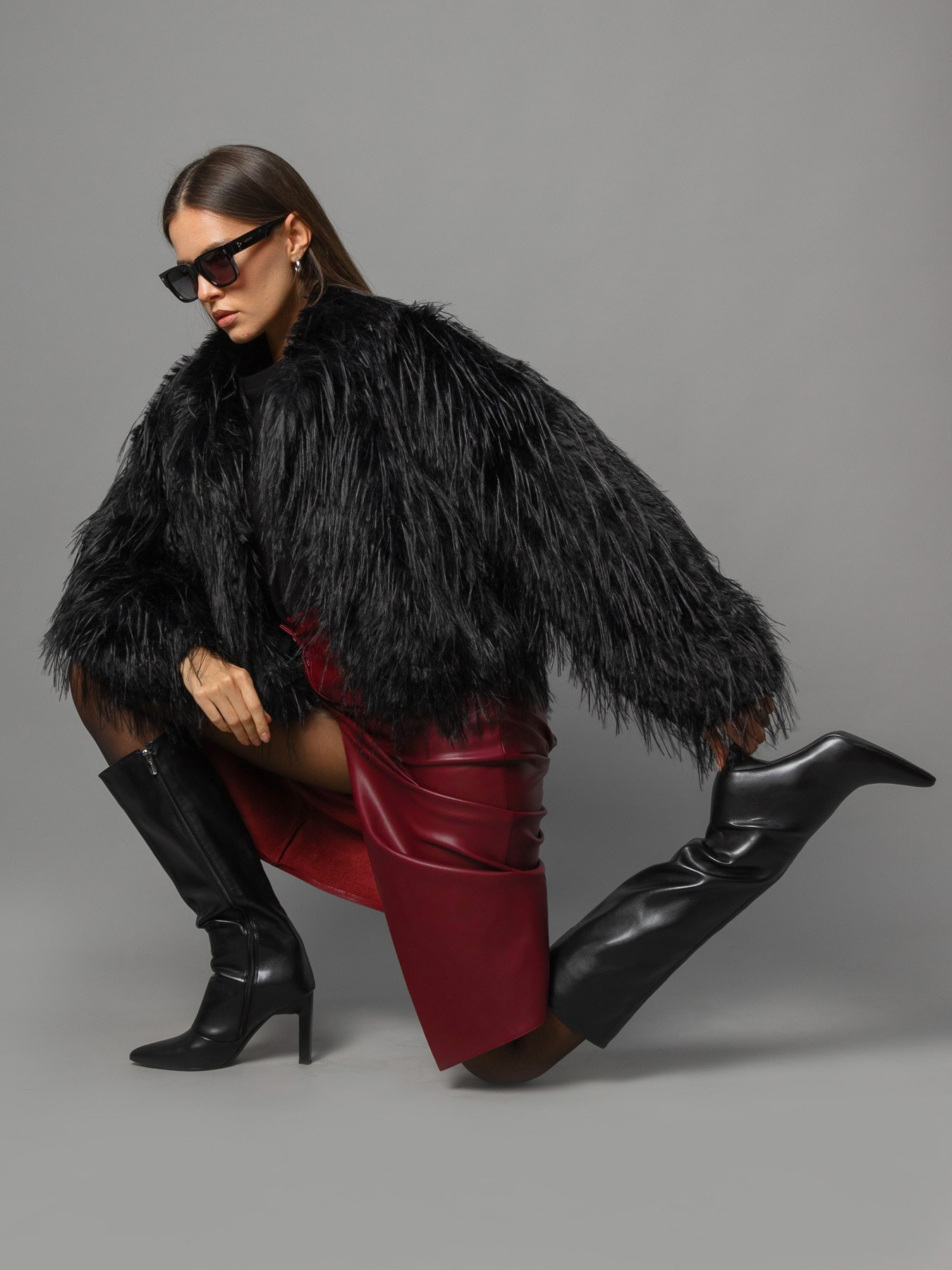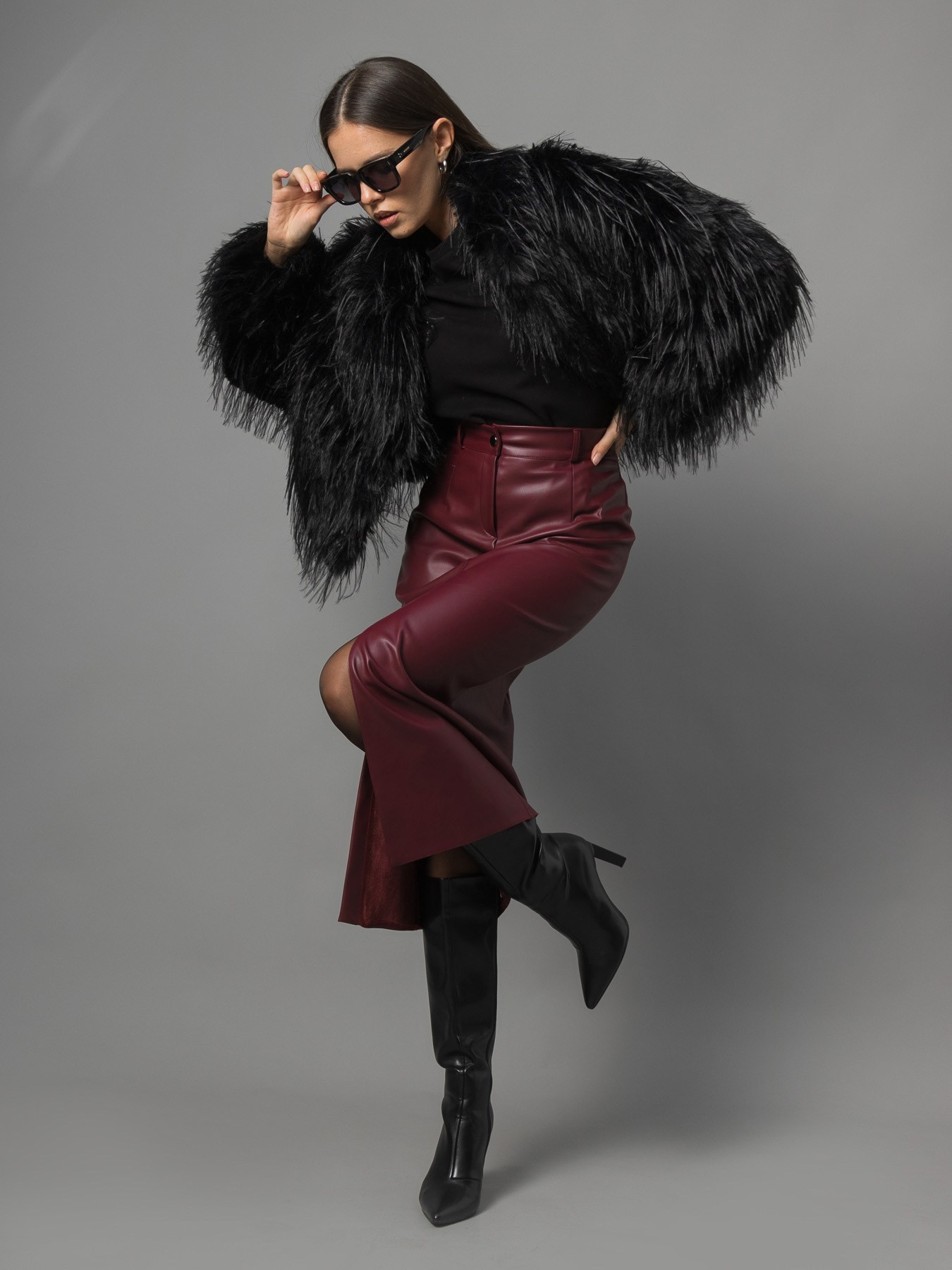 Шубы Серый фон, сложный свет. Фотостудия для Wildberries Ozon